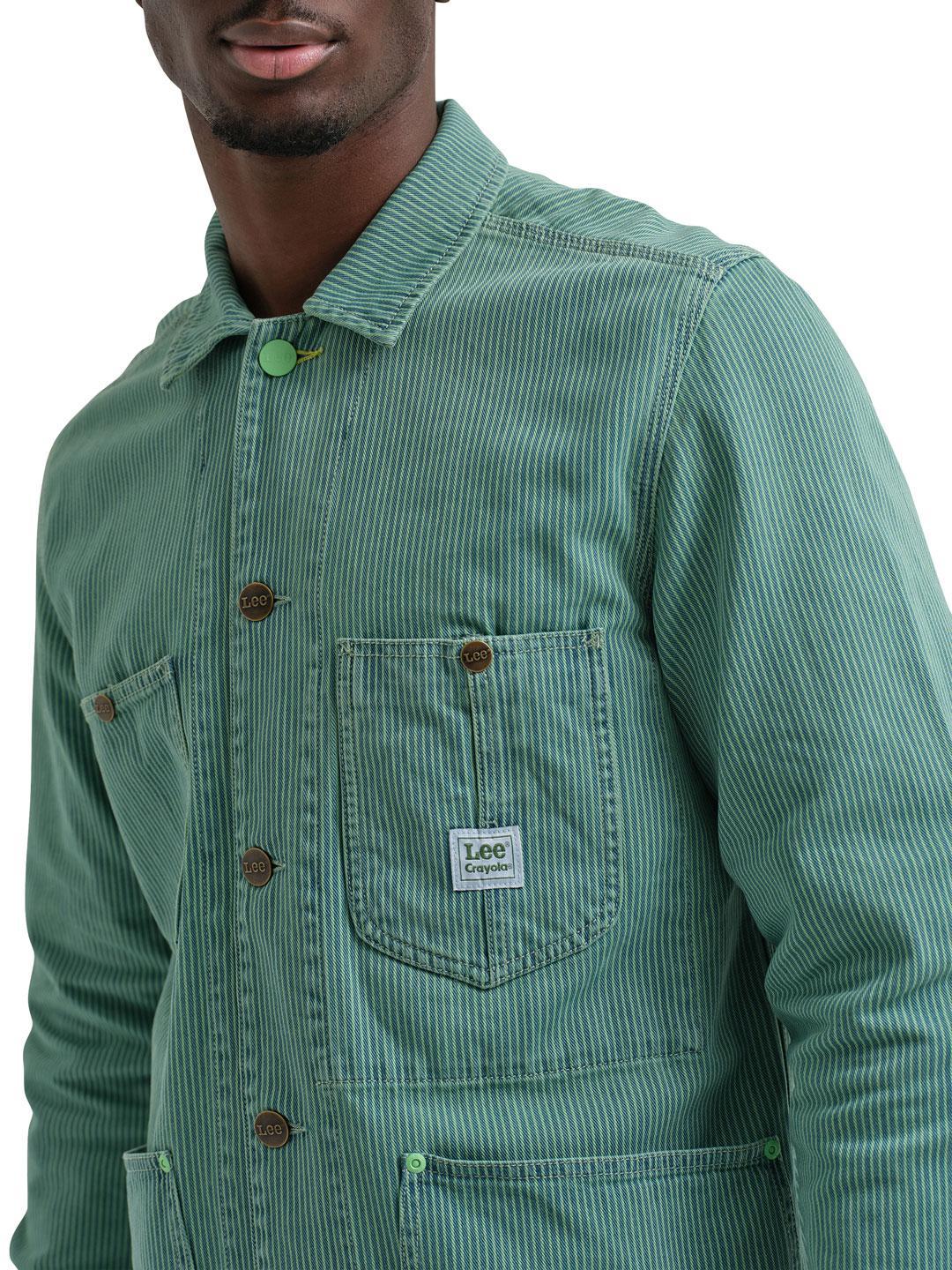 Here for a short time, the Crayola limited edition retired colors are taking Lee workwear by storm. Next in line for the retro-revamp? Our classic chore coat. Each features exclusive Lee x Crayola details like an overdyed take on Lee’s iconic railroad stripe pattern, unique rivets that pop with color, angled cuffs, co-branded patches, and retooled labeling. Equipped with timeless workwear details like spade chest pockets, roomy side pockets and metal Lee logo button. Stay true to the hue by pairing with the matching carpenter jean and hoodie, or mix to create a new colorful style. Make your choice before this colorful collection disappears.