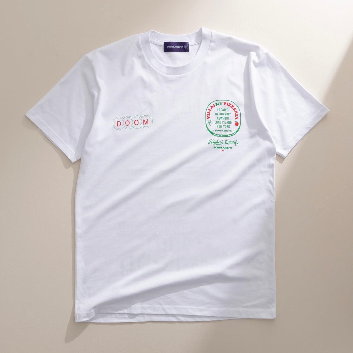 This DOOM drop borrows the visual language of pizza parlors and delivery menus, remixing it with villainy, wit, and obsessive detail. Designed as a front-and-back print on our signature 5.7 oz combed cotton tee, considered the best fabric and fitting t-shirt on the planet.