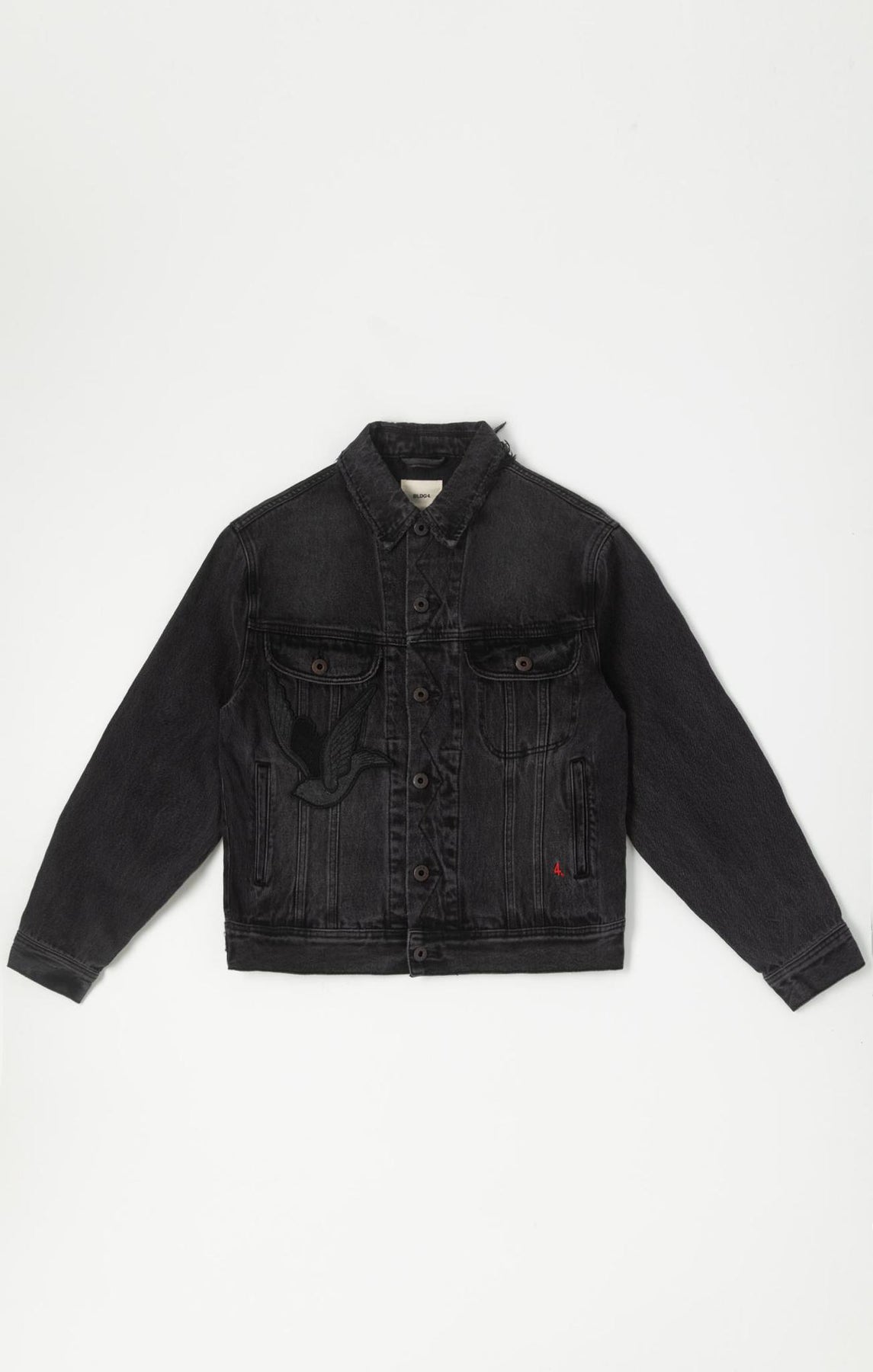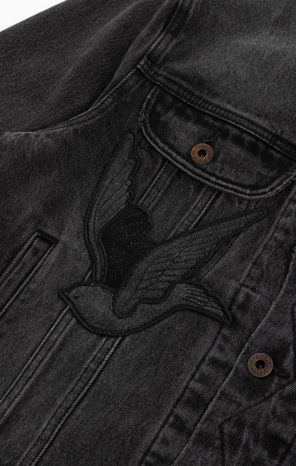 Jean jacket with denim applique artwork